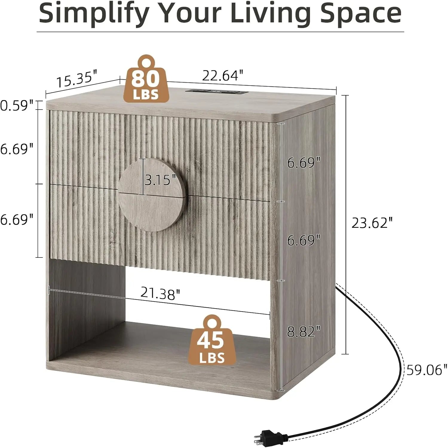 Spacious Storage: The 22.7" W x 24.1" H nightstand offers ample space for books, electronics, and essentials. Features a large drawer, open compartment, and wide desktop to keep items organized and within reach.