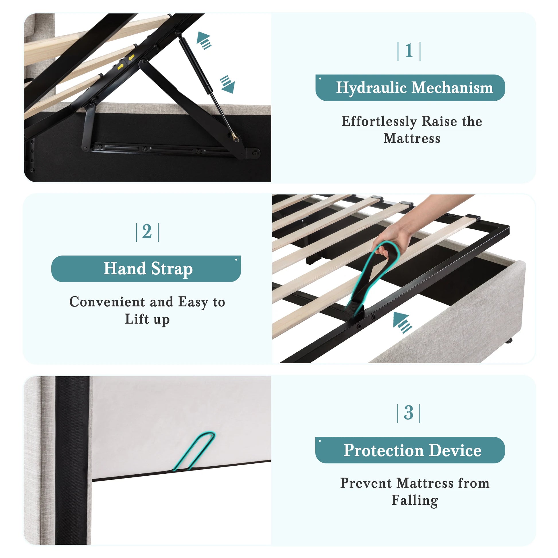 Lift Up Storage Bed with Wingback Headboard/Heavy-Duty Hydraulics